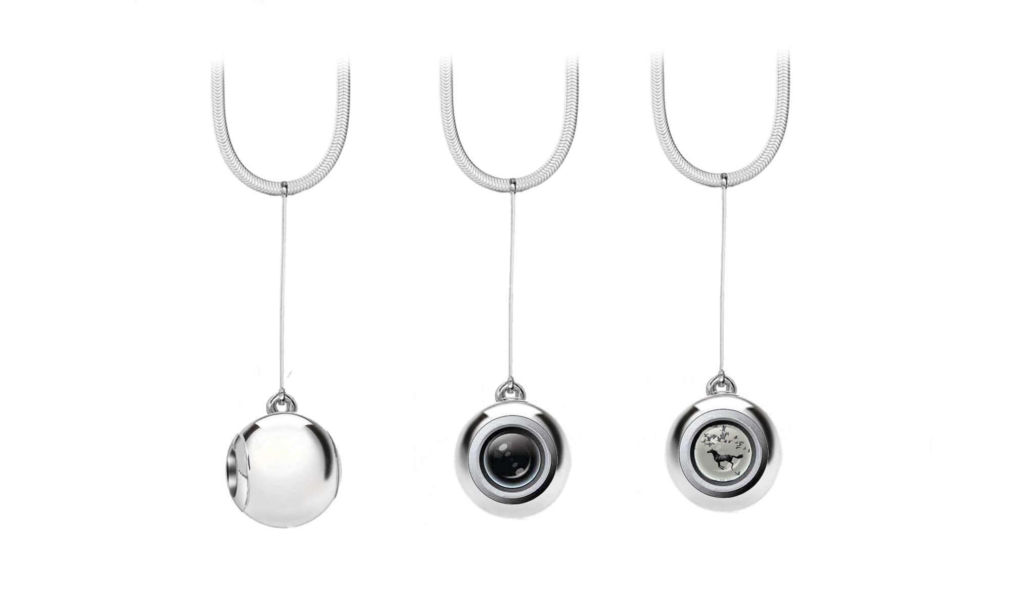 I chose a small simple sphere as the main element of this collection. The See Inside Sphere has a cavity equipped with a precise mechanism of lenses, glass elements and a microfilm, allowing the eye to look inside and discover image and text.