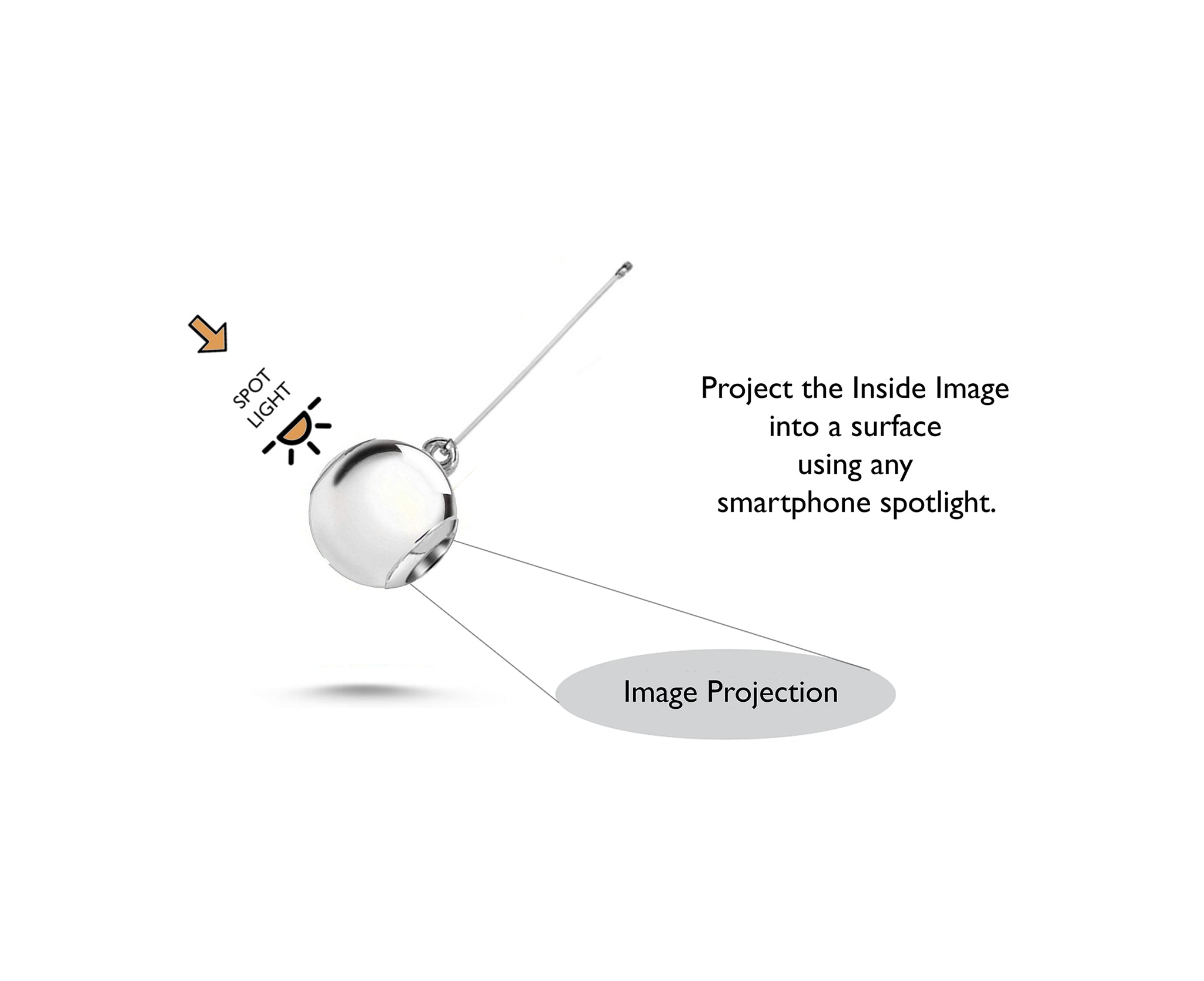 The optical mechanisms allow also to project this image into a surface using any smartphone ́s spotlight. directed to the opposite end to the lens.